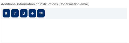 - "Additional Information to appear on confirmation email" can be used to provide further information on the confirmation email (for example opening times, table booking link, instructions, etc). Click Show Confirmation Email to add specific link or message.