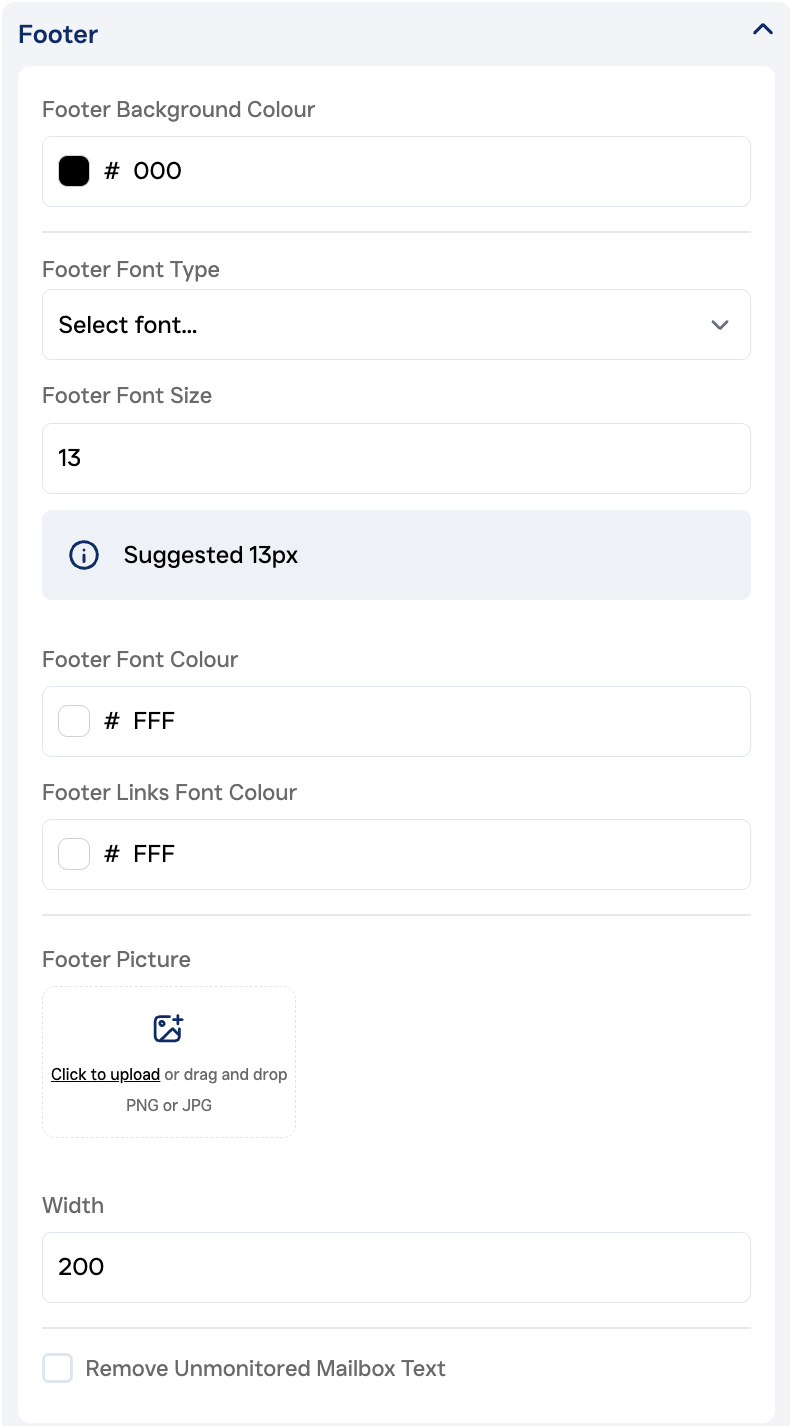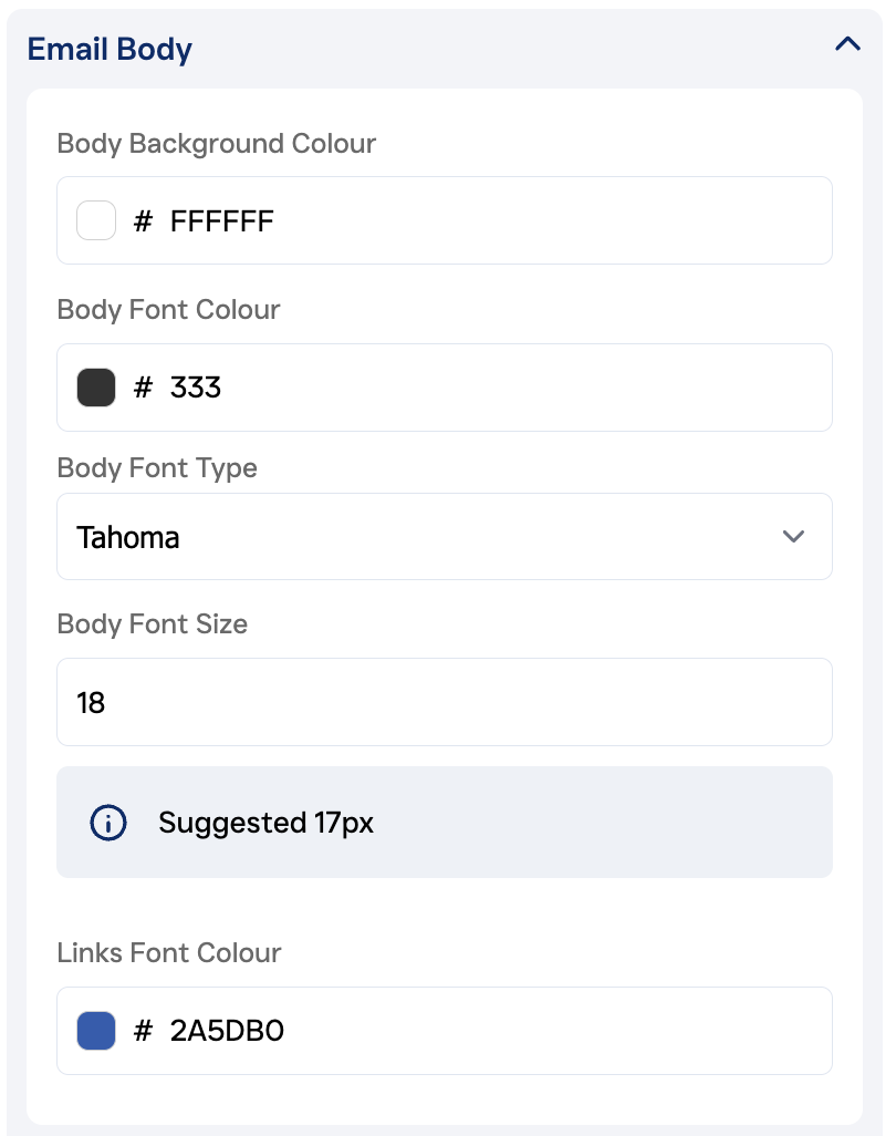 1. Email Background Color (default is black #000000 on white #ffffff)