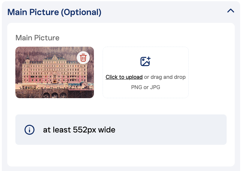 4. Main picture: (will be displayed below the title)