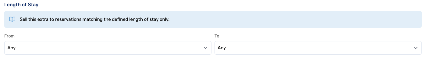 Length of Stay: Set a minimum and maximum length of stay the guest needs to stay in your hotel to be offered specific extra.