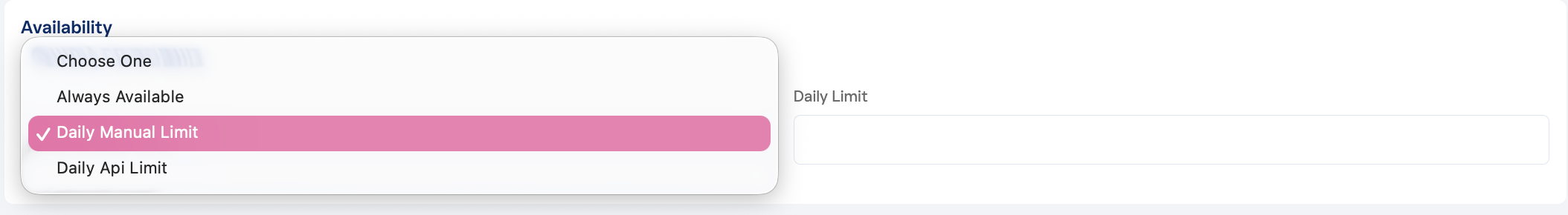 Inventory Constraints: Set the availability for the extra to be either: Always Available, Daily Manual Limit, Daily API Limit (Supported only by RMS).