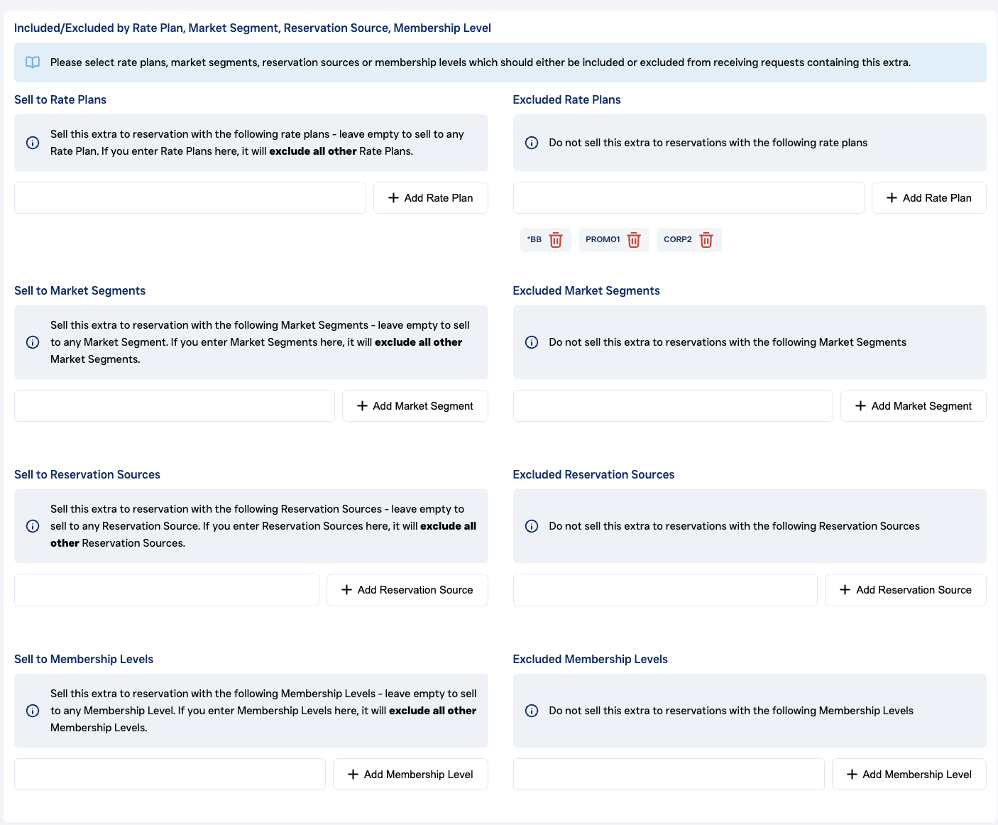 1. Exclude by Rate Plan, Market Segment, Reservation Source & Membership Levels