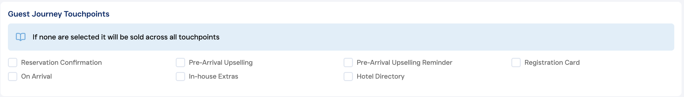 - Extras with no touchpoint selected, which are available across all touchpoints.